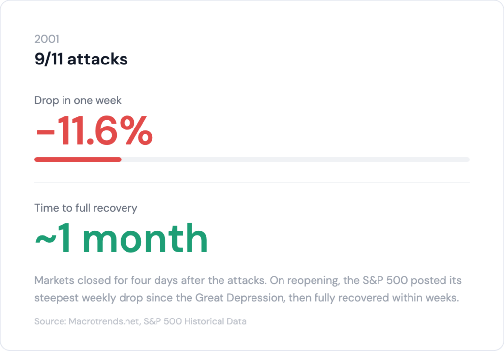 The S&P 500 dropped over 11% in a single week. Within a month, it had recovered.