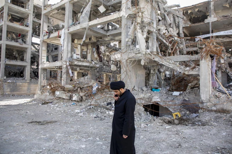 A man walks among buildings destroyed by strikes in Tehran during a joint U.S.-Israeli war in Iran, on Monday. Courtesy of NPR (2026).